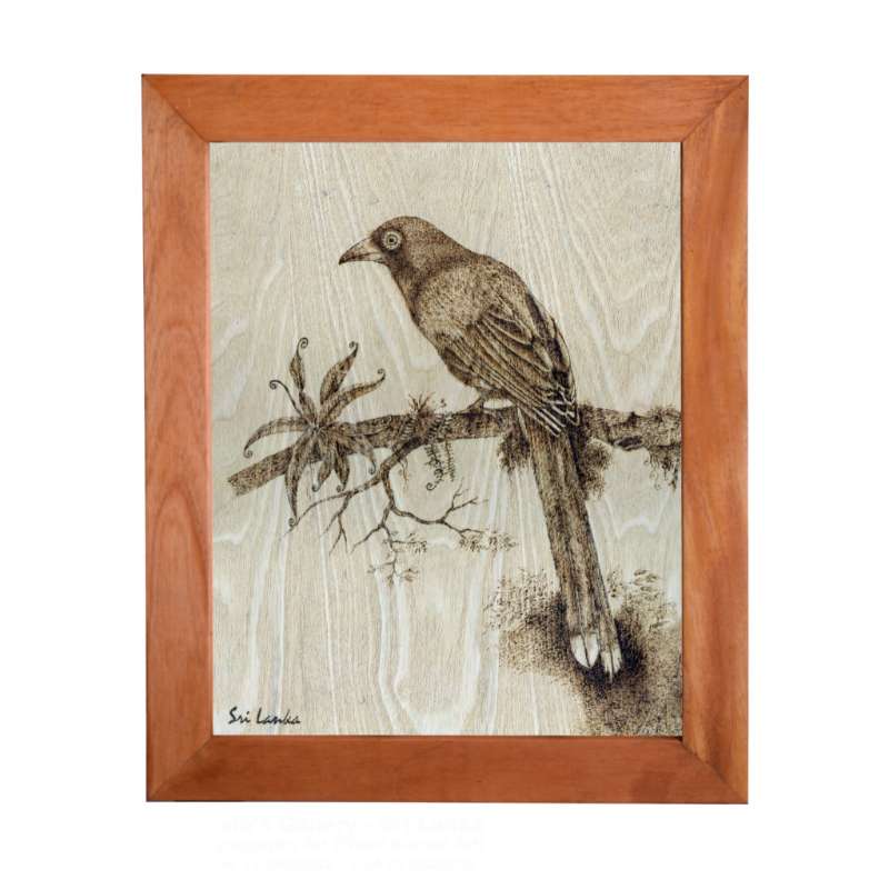 Elevate your living space with our stunning Wood Burn Art, a true testament to the skill and artistry of traditional pyrography. This unique wall hanging, meticulously handcrafted in Sri Lanka, is more than just decor—it's a piece of art with a story, born from the fusion of wood, fire, and creative vision. Dimensions and Weight: Size: Approximately 43 cm x 36 cm x 2.5 cm Weight: Approximately 965 g Materials: Wood Type: Treated finished plywood and treated Mahogany wooden frame Craftsmanship: 100% hand-made with precision and care Artistic Features: Technique: Pyrography, or wood burn art, involves painting on wood surfaces using burnishing techniques. This art form is characterized by its rich textures and detailed designs, created by carefully controlling the intensity of heat applied to the wood. Design: Our artworks are based on original photographs captured by us, ensuring that each piece is unique and deeply personal. The intricate patterns and lifelike details are achieved through freehand techniques—no laser equipment is used, making each artwork a one-of-a-kind creation. Color: The artwork features a color palette shown in the picture, tailored to enhance the natural beauty of the wood and complement your interior decor. Uniqueness: Exclusivity: Each piece is an original, handcrafted work of art. Although similar creations may be attempted, the freehand nature of our process ensures that no two pieces are ever exactly alike. This dedication to manual artistry results in a truly unique and personal addition to your home. Craftsmanship: This art piece reflects the highest standards of craftsmanship achieved by skilled Sri Lankan artists, highlighting their exceptional talent and commitment to traditional techniques. Gift Potential: Ideal Gift: Perfect for art enthusiasts and collectors, this wall hanging makes a memorable gift for special occasions. Its unique nature and handcrafted quality make it a standout choice for those seeking something distinctive and meaningful. Our Wood Burn Art is more than just a decorative item—it's a handcrafted masterpiece that embodies the rich tradition of pyrography. With its bespoke design, premium materials, and the artistry of a Sri Lankan craftsman, this wall hanging is a celebration of creativity and skill, destined to be a cherished addition to any home