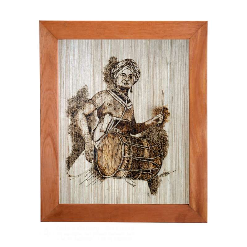 Pyrography Wood Burn Art - Sri Lankan Drummer