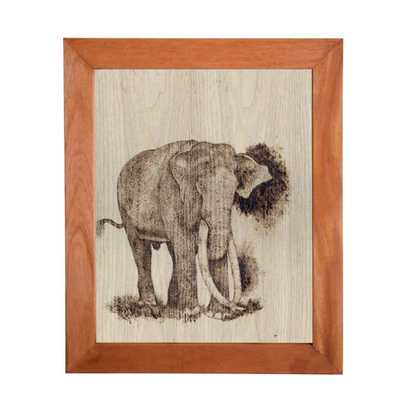 Elevate your living space with our stunning Wood Burn Art, a true testament to the skill and artistry of traditional pyrography. This unique wall hanging, meticulously handcrafted in Sri Lanka, is more than just decor—it's a piece of art with a story, born from the fusion of wood, fire, and creative vision. Dimensions and Weight: Size: Approximately 43 cm x 36 cm x 2.5 cm Weight: Approximately 965 g Materials: Wood Type: Treated finished plywood and treated Mahogany wooden frame Craftsmanship: 100% hand-made with precision and care Artistic Features: Technique: Pyrography, or wood burn art, involves painting on wood surfaces using burnishing techniques. This art form is characterized by its rich textures and detailed designs, created by carefully controlling the intensity of heat applied to the wood. Design: Our artworks are based on original photographs captured by us, ensuring that each piece is unique and deeply personal. The intricate patterns and lifelike details are achieved through freehand techniques—no laser equipment is used, making each artwork a one-of-a-kind creation. Color: The artwork features a color palette shown in the picture, tailored to enhance the natural beauty of the wood and complement your interior decor. Uniqueness: Exclusivity: Each piece is an original, handcrafted work of art. Although similar creations may be attempted, the freehand nature of our process ensures that no two pieces are ever exactly alike. This dedication to manual artistry results in a truly unique and personal addition to your home. Craftsmanship: This art piece reflects the highest standards of craftsmanship achieved by skilled Sri Lankan artists, highlighting their exceptional talent and commitment to traditional techniques. Gift Potential: Ideal Gift: Perfect for art enthusiasts and collectors, this wall hanging makes a memorable gift for special occasions. Its unique nature and handcrafted quality make it a standout choice for those seeking something distinctive and meaningful. Our Wood Burn Art is more than just a decorative item—it's a handcrafted masterpiece that embodies the rich tradition of pyrography. With its bespoke design, premium materials, and the artistry of a Sri Lankan craftsman, this wall hanging is a celebration of creativity and skill, destined to be a cherished addition to any home
