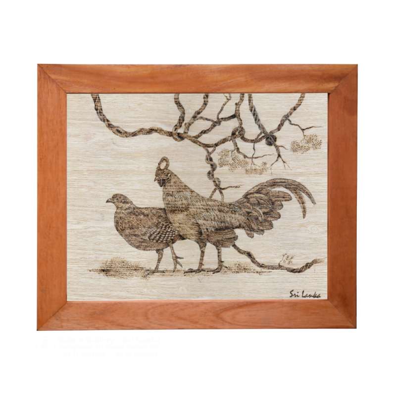 Pyrography Wood Burn Art - Sri Lankan Fowl and Hen