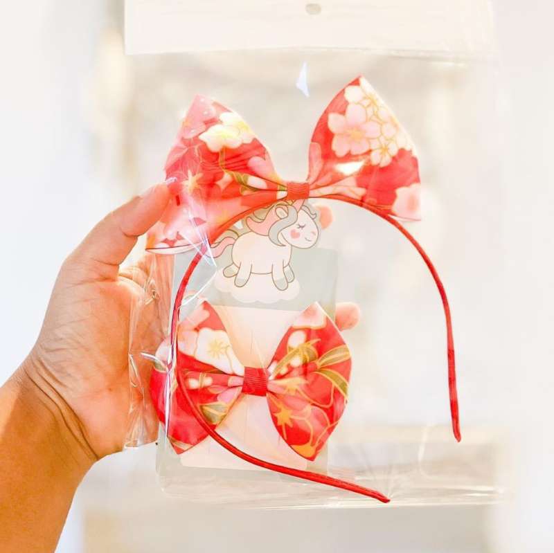 Red Floral Headband & Bow Set