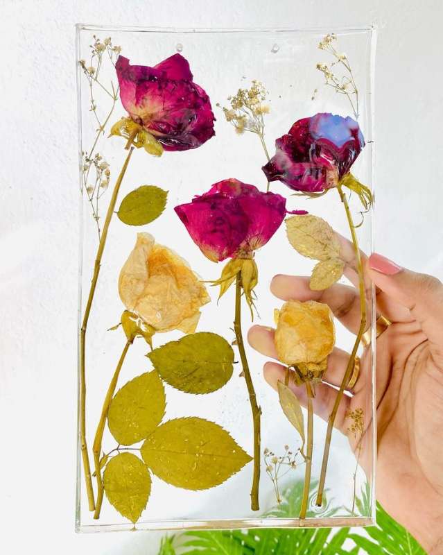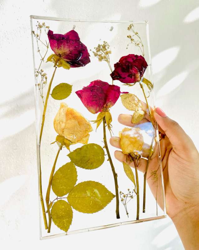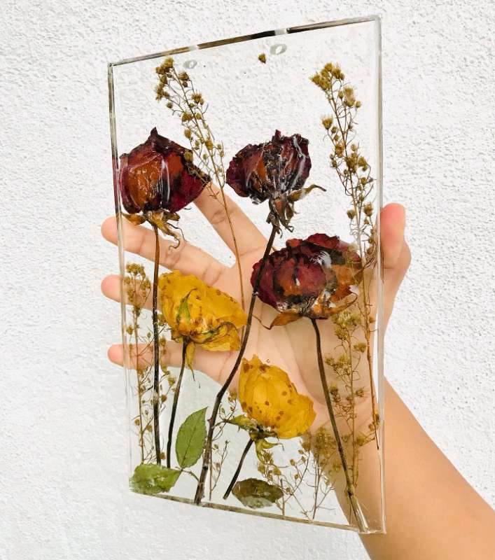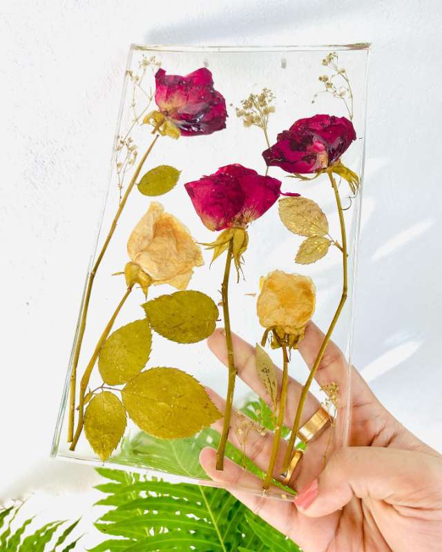 Capture the beauty of nature with our stunning Epoxy Resin Flat Frame, featuring real florals beautifully preserved for a lasting impression. Measuring 10 by 6 inches with a depth of 0.5-1 cm, this enchanting piece adds a touch of elegance to any space. The perfect gift for nature lovers, it showcases preserved roses, ensuring their natural beauty lasts a lifetime. Celebrate life’s moments with a unique decor piece that blooms forever! Please note that floral arrangement and design will be unique to each art piece and will stick to the floral color you choose on options bar. Floral color preserved for lifetime. Avoid floral color fade overtime by not exposing to direct/indirect sunlight