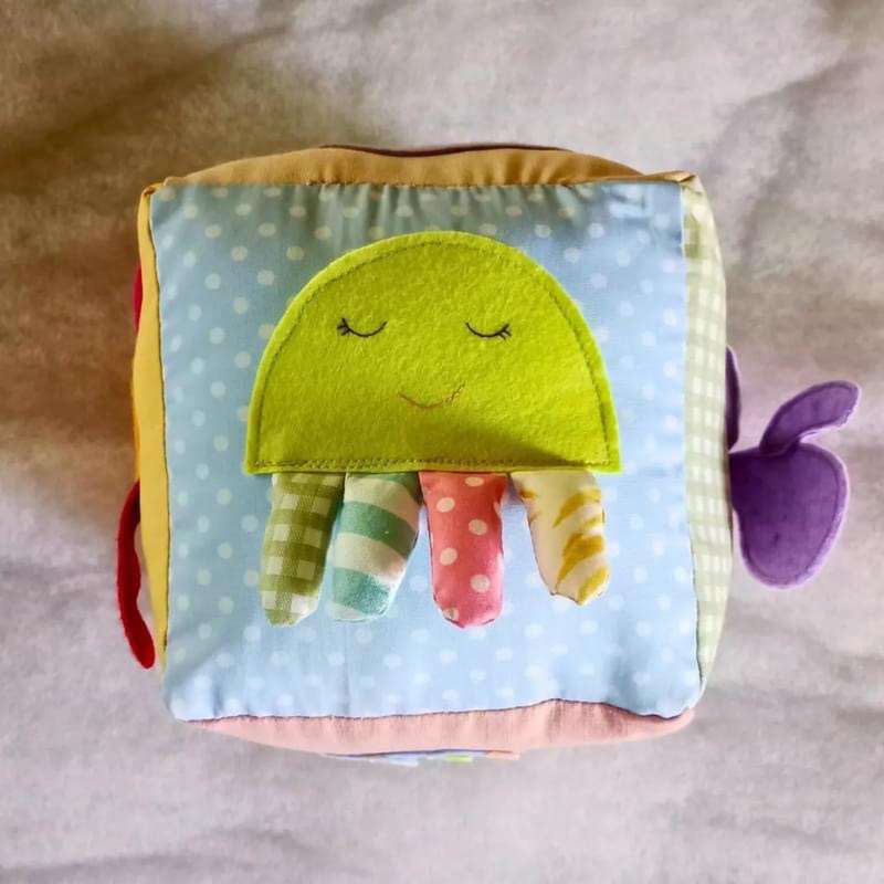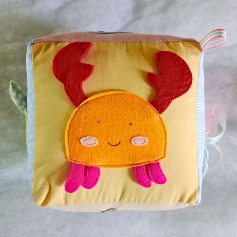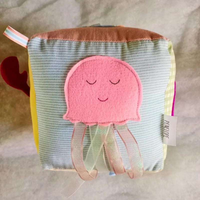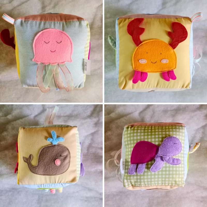 Sea Animal Sensory Cube: Dive into Fun and Learning! Introducing the Sea Animal Sensory Cube—a captivating addition to your baby’s playtime that combines sensory stimulation with delightful exploration. Perfect for any occasion, from baby showers to birthdays or just because, this charming cube is crafted to engage young minds and provide endless entertainment. Key Features: Size: 8x8 inches, making it the perfect size for little hands to grasp and explore. Material: Made with premium linens and soft cottons, ensuring a gentle touch against delicate skin. Sensory Engagement: Features 3D sensory elements designed to fascinate and delight, encouraging tactile exploration and discovery. Practicality: Washable and built for durability, this cube stands up to the rigors of active play while remaining easy to clean. Benefits: Stimulates Tactile Senses: The variety of textures and 3D elements engage your baby’s sense of touch, enhancing sensory development. Fosters Cognitive Development: The vibrant sea animal patterns and interactive features stimulate cognitive skills and visual recognition. Sparks Imagination: The playful sea-themed design inspires imaginative play and storytelling. Provides Hours of Fun: Keeps babies entertained and engaged through interactive and exploratory play. Durable & Practical: Designed to withstand the wear and tear of active play and easy to clean for long-lasting use. Make the Sea Animal Sensory Cube a treasured part of your baby’s developmental journey—where every touch and interaction opens up a world of fun and learning
