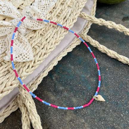 Dive into a burst of color and coastal charm with our Blue and Hot Pink Beaded Minimal Necklace, featuring a delightful sea shell pendant. This striking accessory blends vibrant hues with a minimalist design, creating a look that is both playful and sophisticated. The necklace showcases a stunning combination of blue and hot pink beads, artfully arranged to create a dynamic and eye-catching pattern. The bold color contrast adds a lively touch to your outfit, evoking the vibrant energy of summer and the beach. At the heart of the necklace is a delicate sea shell pendant, adding a touch of natural elegance and a nod to seaside adventures. Designed with simplicity and versatility in mind, this necklace is perfect for adding a pop of color to casual wear or for dressing up a beach-inspired look. Its lightweight design ensures comfort, while the minimalist style allows it to seamlessly integrate into any wardrobe. Key Features: Vibrant Beaded Design: A lively mix of blue and hot pink beads creates a striking and energetic look. Sea Shell Pendant: A charming sea shell charm adds a touch of coastal elegance and natural beauty. Minimalist Style: Perfect for both casual and dressy occasions, blending playful colors with a sleek design. Comfortable Fit: Lightweight and designed for easy wear, ensuring comfort throughout the day. Celebrate the spirit of summer and coastal beauty with the Blue and Hot Pink Beaded Minimal Necklace. Let the vibrant colors and elegant sea shell pendant make every day feel like a sunny escape