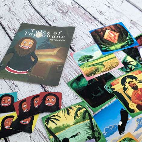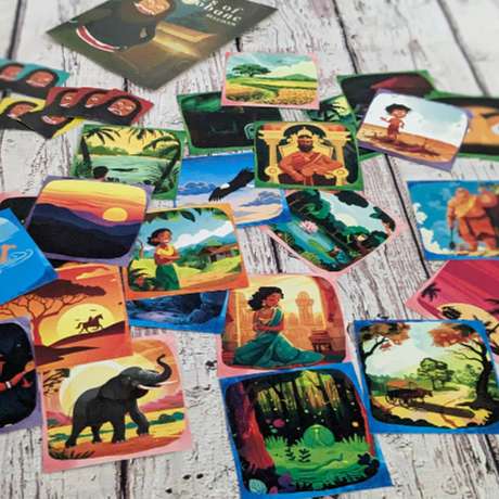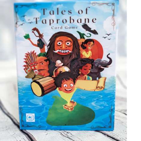 Tales of Taprobane: A Magical Storytelling Card Game Description: Ignite your imagination and delve into the rich tapestry of Sri Lankan culture with "Tales of Taprobane," a captivating card game that combines the magic of storytelling with the vibrant folklore of Sri Lanka. Perfect for family gatherings and parties, this game invites players of all ages to craft enchanting stories together, blending creativity with cultural exploration. Key Features: Creative Storytelling: Spark creativity and connect with Sri Lankan culture as you weave tales inspired by traditional folklore. The game encourages collaborative storytelling, allowing players to build and expand on narratives in imaginative ways. Family-Friendly Fun: Ideal for kids aged 4 and up, "Tales of Taprobane" is designed for players of all ages. It provides a fun and engaging experience for families and friends, making it a great addition to any game night. Flexible Play: Suitable for many players, the game is perfect for large groups or intimate gatherings. Its flexible nature ensures everyone can join in on the storytelling adventure. Quick Sessions: Each game lasts between 15 to 20 minutes, making it an ideal choice for a quick and enjoyable experience. It’s easy to fit into any schedule, whether you’re looking for a short play session or a longer storytelling journey. Easy to Learn: The game includes a straightforward rule book, making it simple for players of all skill levels to understand and enjoy. You’ll be crafting stories in no time with minimal setup. Seven Games in One: "Tales of Taprobane" offers seven different game modes within one box. Each mode provides a unique twist on the storytelling experience, ensuring endless variety and replay-ability. Specifications: Number of Players: Many (suitable for large groups) Recommended Age: 4 and up Game Duration: 15 to 20 minutes Game Type: Collaborative Storytelling Included: Easy-to-understand rule book Embark on a journey of imagination and cultural discovery with "Tales of Taprobane." This enchanting game brings the magic of Sri Lankan folklore to life, fostering creativity and connection through the art of storytelling. Perfect for creating memorable moments with family and friends!