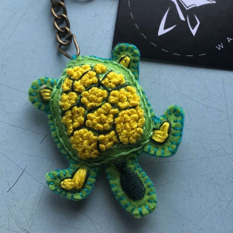 Introducing our Turtle Keychain, a delightful accessory that brings a touch of whimsy to your everyday items. Measuring H: 6.5cm and W: 5cm, this keychain is the perfect size for keys, bags, or even as a decorative piece. - Material: Made from soft and durable felt, ensuring a cozy and lasting accessory. - Color: Vibrant green, adding a pop of color to your belongings. - Unique Feature: Features intricate hand embroidery of a charming turtle, showcasing meticulous craftsmanship. - Personalization Options: Customize your keychain with your preferred embroidery color from a palette of white, black, green, pink, red, or purple. - Size and Fit: Compact size makes it easy to carry and a cute addition to any keyring or bag. - Delivery: Personalized and crafted with care, with a quick delivery time of just 3 days. - Price: LKR 1,770/= Add a touch of personality and charm to your accessories with the Turtle Keychain, a perfect blend of craftsmanship and customization. Available now for those who love unique and adorable designs