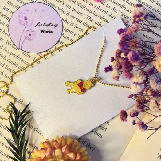 Item #064 Celebrate the magic of Disney with our Winnie the Pooh Charm Necklace, a delightful piece that combines whimsical charm with classic elegance. Handcrafted with attention to detail, this necklace features a lovingly designed Winnie the Pooh charm that captures the beloved character’s playful and endearing spirit. The charm’s intricate detailing and high-quality gold-plated finish add a touch of sophistication, making it a perfect accessory for Disney fans or anyone who cherishes whimsical, nostalgic jewelry. Key Features: Material: Durable metal with a gold-plated finish for a refined look Design: Exquisitely crafted Winnie the Pooh charm with detailed features and a lovable expression Chain: Adjustable, gold-plated chain for a comfortable and customizable fit Closure: Secure lobster clasp for ease of wear and reliability Ideal for adding a touch of Disney magic to both casual and formal outfits, this charm necklace is perfect for celebrating your love for Winnie the Pooh or simply enjoying a charming and nostalgic accessory. Wear it on its own for a classic statement or pair it with other pieces to create a personalized look that reflects your unique style. Care Instructions: To maintain the beauty of your Winnie the Pooh charm necklace, avoid exposing it to harsh chemicals and prolonged moisture. Clean with a soft, dry cloth and store in a dry, cool place. Embrace the enchantment of Disney with this delightful Winnie the Pooh charm necklace and let your style shine with a touch of whimsical charm!