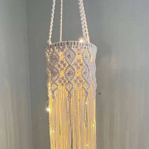 Introducing the Macrame Lamp Shade, a stunning piece that brings warmth and texture to your home decor. This handcrafted lamp shade is available in three sizes—8 inches, 10 inches, and 12 inches—allowing you to choose the perfect fit for your space. - Material: Made from high-quality cotton cord, ensuring durability and a soft, natural look. - Design: Features intricate macrame patterns, showcasing exceptional craftsmanship and adding a bohemian touch to any room. - Purpose: Perfect for use in living rooms, bedrooms, or any space that needs a stylish and unique lighting solution. - Versatility: Can be used as a pendant lamp shade or with a table lamp base, making it a versatile addition to your home decor. Enhance the ambiance of your home with the Macrame Lamp Shade, a perfect blend of style and functionality. Available now in three sizes to suit your decorating needs