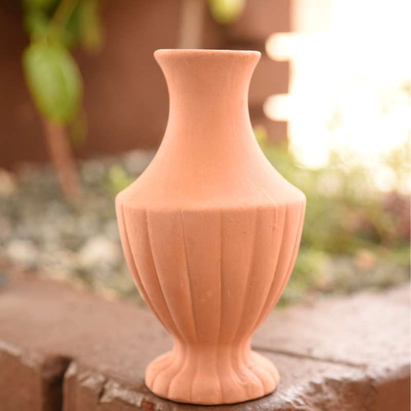 Elegant Terracotta Vase – A Timeless Addition to Your Home Decor! Introduce a touch of classic charm and rustic elegance to your living space with our Terracotta Vase. Crafted to combine traditional beauty with modern versatility, this vase is the perfect way to display flowers, greenery, or simply enhance your home’s aesthetic. Features: Timeless Design: The classic, earthy finish and gracefully curved silhouette of this terracotta vase make it a stunning decor piece. Its timeless design seamlessly complements a variety of interior styles, from rustic to contemporary. Versatile Use: Ideal for displaying fresh or dried flowers, lush greenery, or even as a standalone decorative piece, this vase is perfect for any room in your home. Use it to create a focal point on your dining table, mantelpiece, or entryway. Unique Decor Accent: Beyond its functional use, this vase adds a distinctive touch to your decor. Its natural terracotta finish and elegant shape make it a beautiful complement to your home’s decor, enhancing the overall ambiance. Benefits of Using Terracotta for Vases: Natural Aesthetic: Terracotta’s rich, earthy tones and texture add warmth and character to your decor. The natural appearance of the clay enhances the beauty of both the vase and the flowers or greenery it holds. Breathability: The porous nature of terracotta allows for better air circulation around the stems of fresh flowers, helping them stay fresher for longer. This natural breathability is especially beneficial for maintaining the health of floral arrangements. Eco-Friendly Choice: Made from natural clay, this vase is an environmentally friendly alternative to synthetic or plastic vases. Its production process is less harmful to the environment, making it a sustainable choice for eco-conscious consumers. Artisanal Craftsmanship: Each vase is handcrafted, giving it a unique, artisanal quality. The natural texture and warm hues of terracotta create a distinctive and charming piece that adds a personal touch to your decor. Durability: Terracotta is known for its durability, ensuring that this vase remains a cherished part of your home decor for years to come. Its robust construction makes it suitable for both indoor and outdoor use. Versatile Decor: Whether used to hold flowers, as a standalone decorative item, or as part of a larger arrangement, this vase adds a versatile and elegant touch to any space. Its classic design makes it a timeless addition to your home. Elevate your home decor with the Terracotta Vase – a blend of traditional charm and practical benefits. Perfect for showcasing your favorite blooms or enhancing your living space with