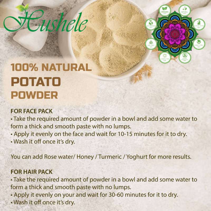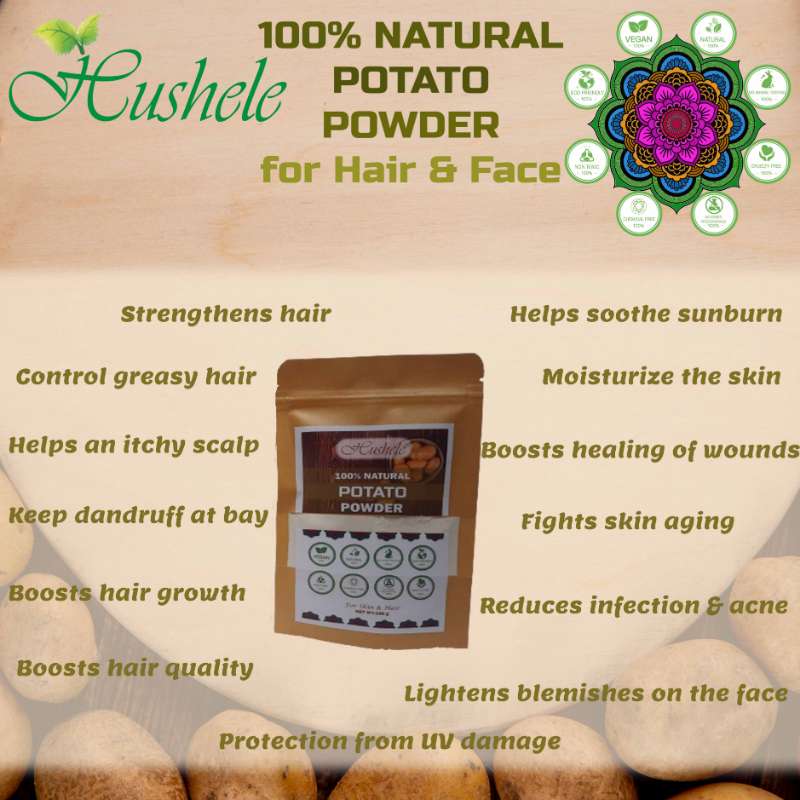 Hushele 100% Natural 🥔 Potato Powder Pack 100g 💵650/=)💆♀️💆♂️🧖♀️🧖🛀For Beautiful Hair and Skin. 🌿🌱 100% natural Potato powder to boosts Hair Growth & Quality, Fights skin-aging, Keeps Dandruff at bay, Lightens blemishes on the face and helps to moisturize the skin. FOR FACE PACK • Take the required amount of powder in a bowl and add some water to form a thick and smooth paste with no lumps. • Apply it evenly on the face and wait for 10-15 minutes for it to dry. • Wash it off once it’s dry. You can add Rose Water/ Honey / Turmeric / Yoghurt for more results. FOR HAIR PACK • Take the required amount of powder in a bowl and add some water to form a thick and smooth paste with no lumps. • Apply it evenly on your and wait for 30-60 minutes for it to dry. • Wash it off once it’s dry. You can add Coconut oil / Fenugreek powder for more results