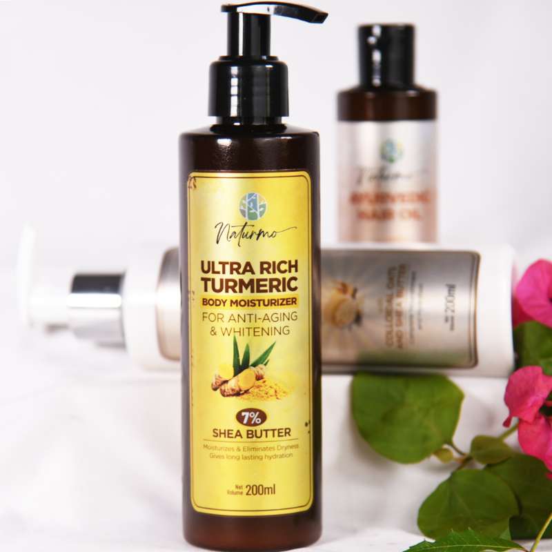 Experience the rejuvenating benefits of the Turmeric Body Moisturizer, specifically formulated to combat signs of aging and enhance skin brightness. This 200ml moisturizer combines the anti-inflammatory properties of turmeric with powerful whitening agents, offering comprehensive care for your skin. Benefits: - Anti-Aging: Reduces the appearance of fine lines and wrinkles, promoting a youthful complexion. - Whitening: Helps to brighten the skin, reducing the appearance of dark spots and hyperpigmentation. - Deep Hydration: Provides long-lasting moisture, preventing dryness and flakiness. - Soothing Relief: Calms irritated skin and reduces redness and inflammation. - Nourishment: Enriched with essential vitamins and fatty acids to nourish and rejuvenate the skin